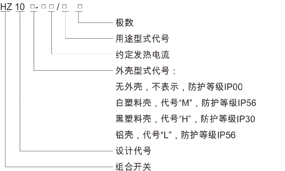 HZ10系列组合开关主要适用于交流50Hz ~60Hz,电压 380 V及以下,直流电压 220V及以下的电