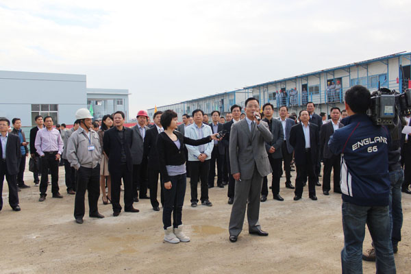 雨后初晴,空气更加清新。在场容美观整洁、材料摆放有序、文明建设气氛浓郁的工地上,考察团领导们饶有兴致地察看了项目现场,并在工程建设效果图前听取了乐清市领导赵明皓的认真介绍。
