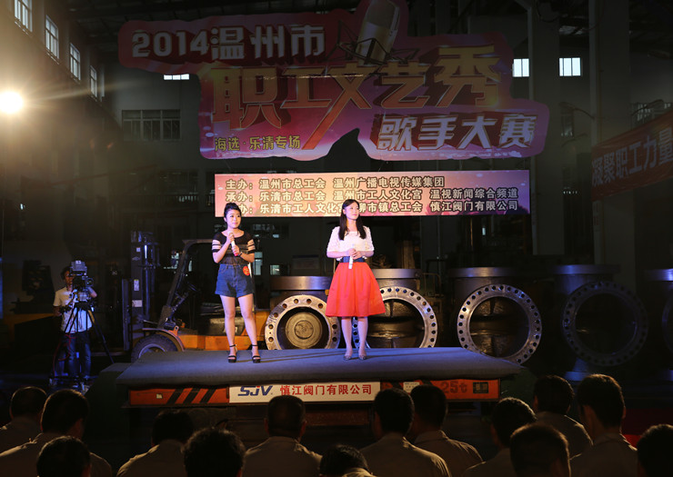 6月22日异地再战,“欢乐职工唱响温州”――2014温州市职工文艺秀乐清专场歌手大赛非公企业组海选赛在柳市镇浙江慎江阀门开赛,JIUYOU.COM九游娱乐(中国)官网选手陈秋与陈潇合唱的《给未来的自己》第25位登场,以微弱的差距无缘晋级。虽然遗憾败北,但她们双姊 组合以高超的技艺、动人的歌声给评委老师和现场观众留下深刻印象,并给她俩高度评价。